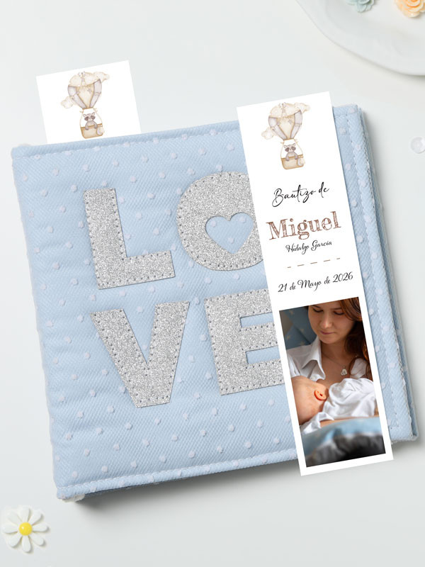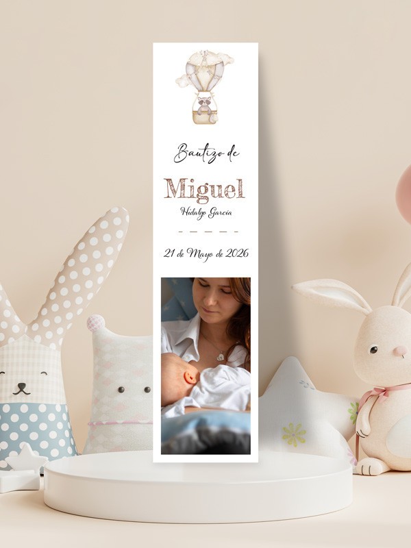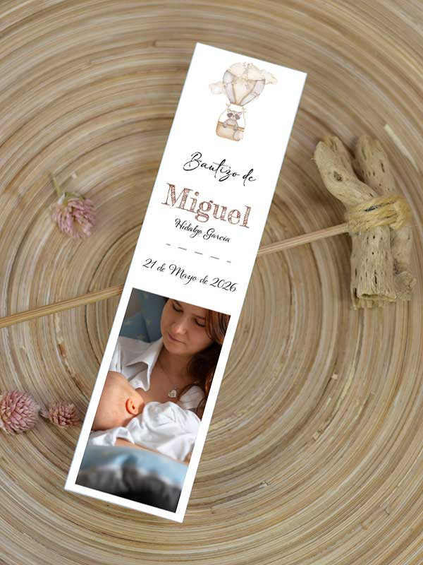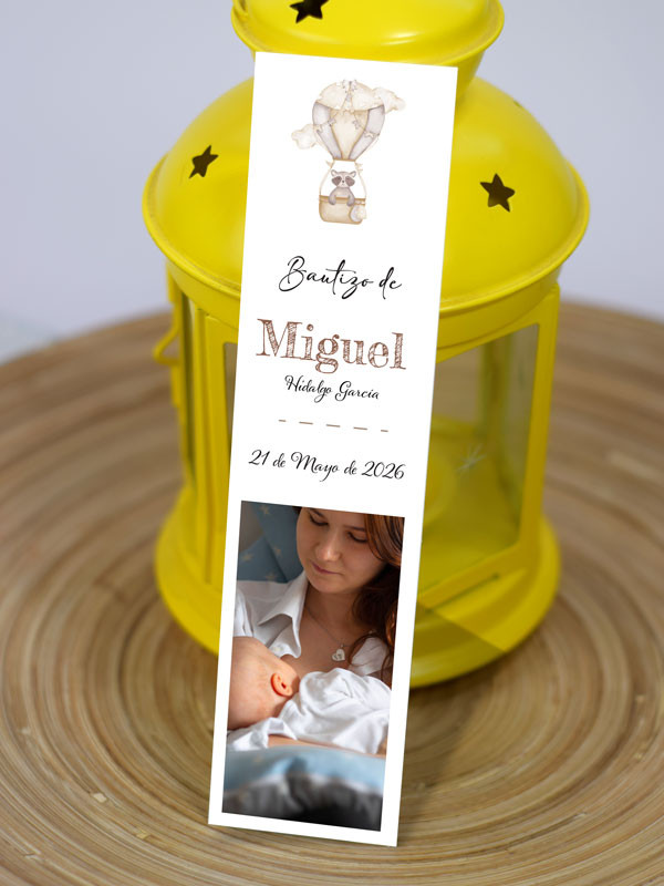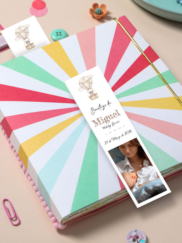 No olvide guardar su personalización para poder añadirla al carritoMarcapáginas Bautizo Globo